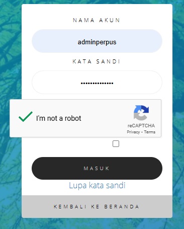 Jika cara diatas tidak berhasil maka Anda perlu login ke admin perpustakaan, tetapi karena ReCaptcha sedang error maka anda tidak dapat masuk admin.